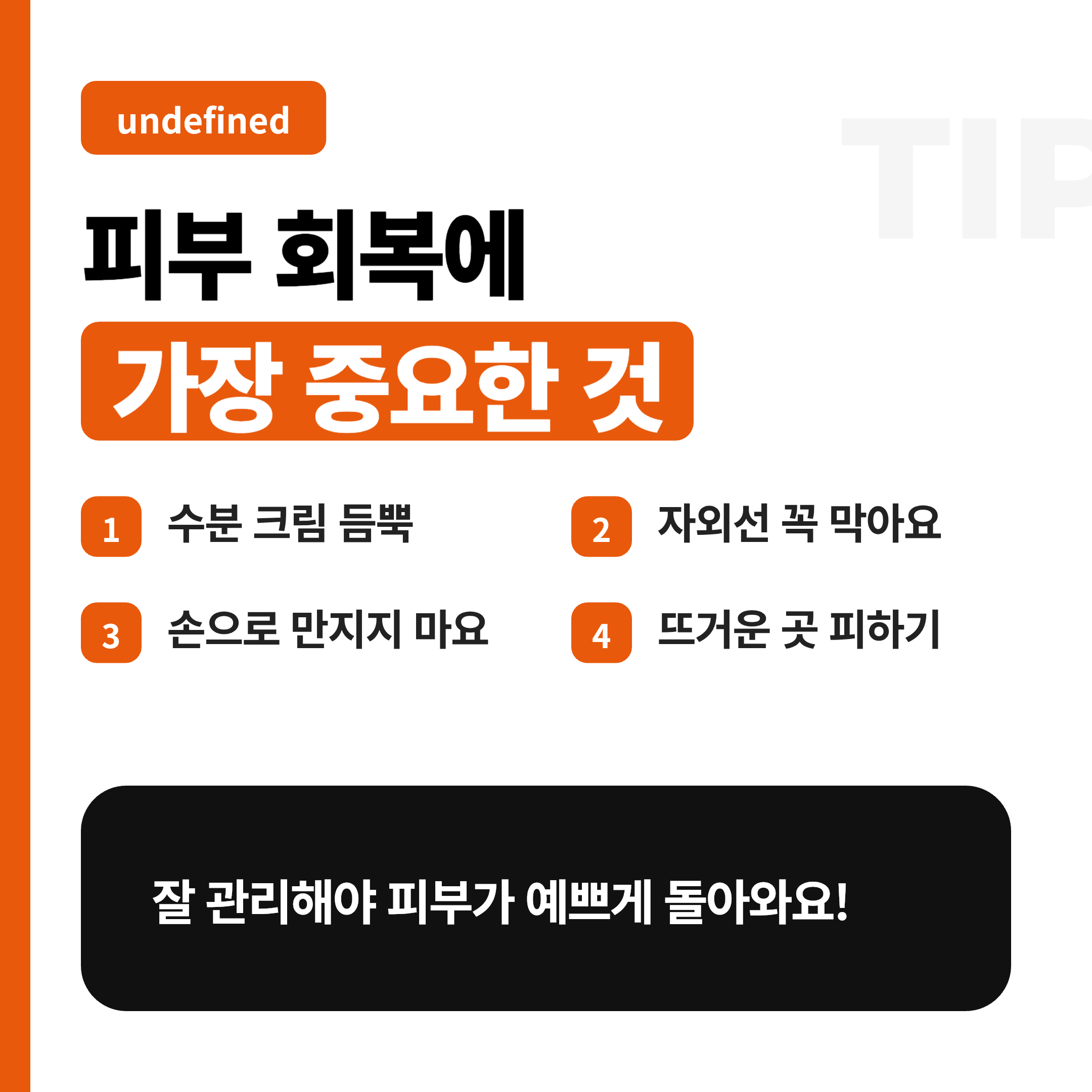 - 보습 수분크림을 여러 번 덧바르고, 당김이 심하면 재생크림을 병행해요