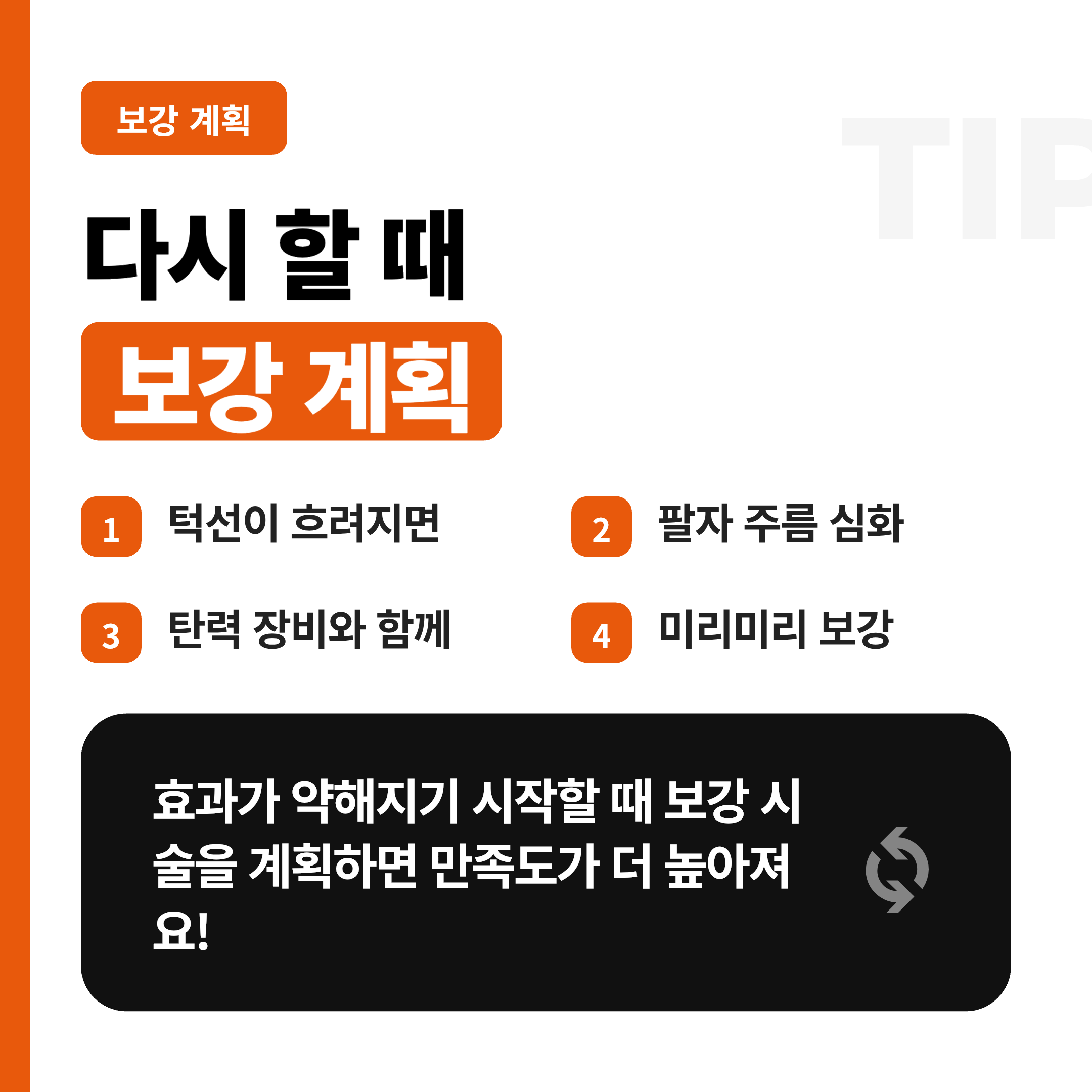 실리프팅은 한 번으로 끝내기보다, 내 처짐 패턴에 맞춰 보강을 적절히 가져가면 만족도가 더 좋아지는 경우가 많아요.