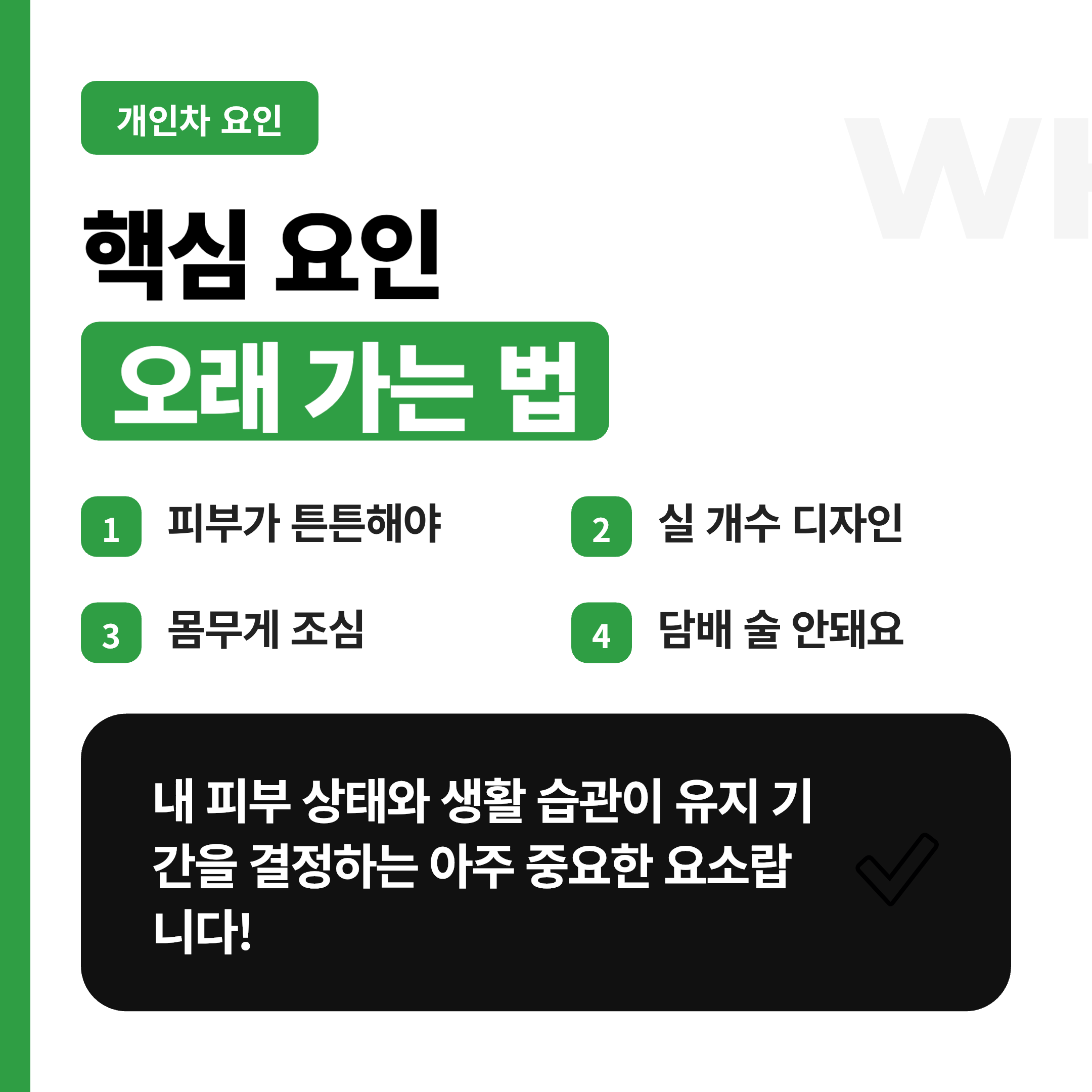 - 체중이 급격히 오르내리지 않게 관리하면 라인이 오래가요