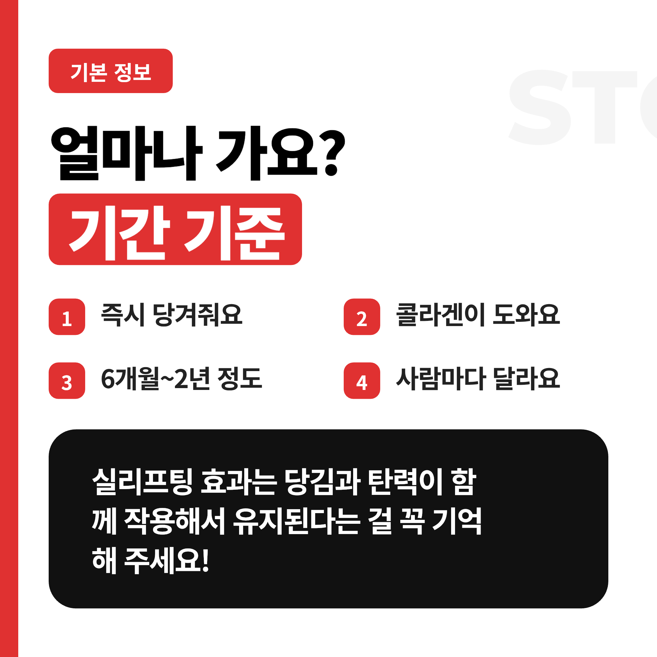 그래서 실리프팅 유지기간을 말할 때는 두 가지를 나눠서 생각하는 게 좋아요.