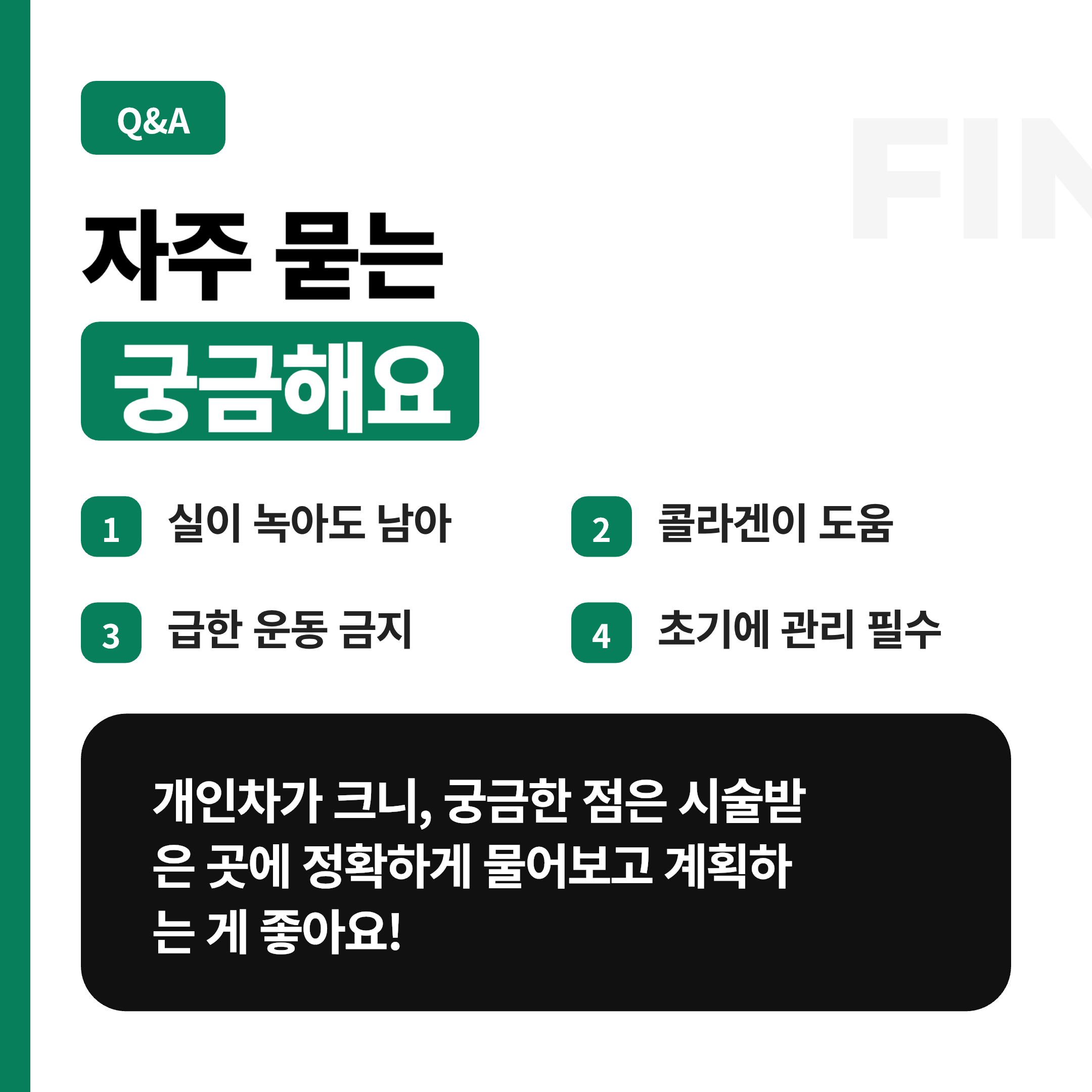 특히 흡수성 실은 일정 시간 후 분해되고, 그 뒤 콜라겐 반응이 이어지는 흐름이라서 초기 회복기에 관리를 잘하면 만족도가 더 길게 가는 편이에요.